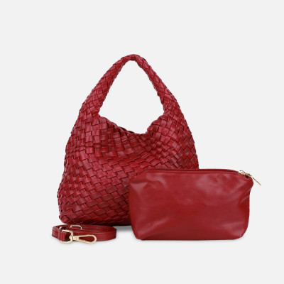 شنطه لون احمر نسائية بتصميم عصري بلون أحمر تبرز أناقتك في جميع الأوقات تجمع بين الجلد المتداخل والبارز لتعطي مظهراً فاخراً وتأتي مع شنطة صغيرة إضافية وحزام قابل للتعديل لتوفير راحة أكبر في الحمل تصميم اليد المقوسة يجعلها عملية وسهلة الاستخدام مناسبة كهدية مميزة تعبر عن الذوق الرفيع